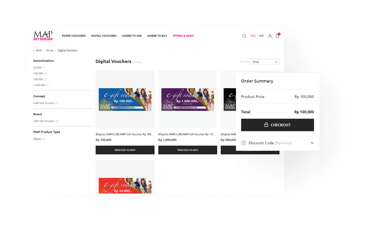 MAP Gift Voucher is the first retailer to launch an Ecommerce site that sells official voucher paper and digital forms, due to its uniqueness, Kemana will be developing a distribution system for both paper and digital.
