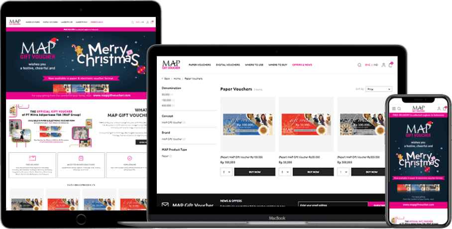 PT Mitra Adiperkasa Tbk (MAP Indonesia), Indonesia’s largest lifestyle retailer, has introduced an official gift voucher that can be used for redemption at any of its 2600 retail outlets. The company built an Ecommerce website to have a convenient way of purchasing a paper or digital gift vouchers for birthdays, wedding anniversaries, Valentine’s Day, holidays, and festive occasions.