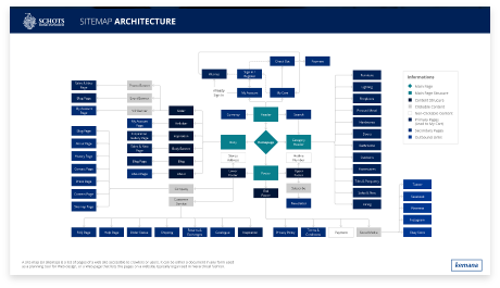 Giving a visual representation of the site’s organisation and how different sections are linked together. It defines how people see, navigate and experience a system of information, and functionality